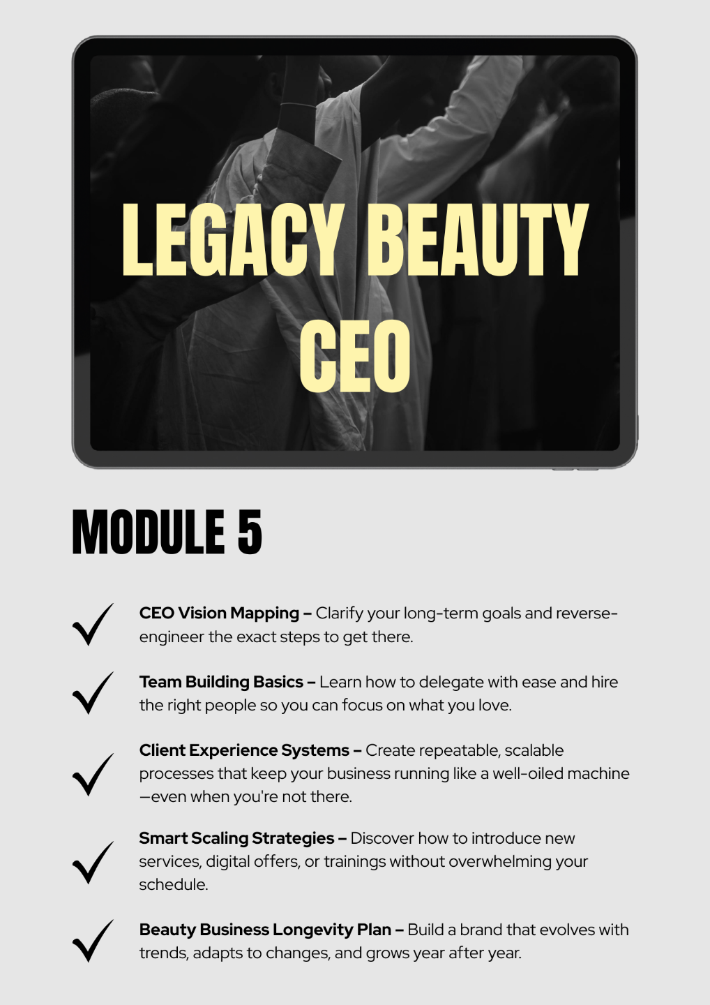 Module 5: Legacy Beauty CEO: Build a Business That Pays You for Years to ComeāNot Just Today
